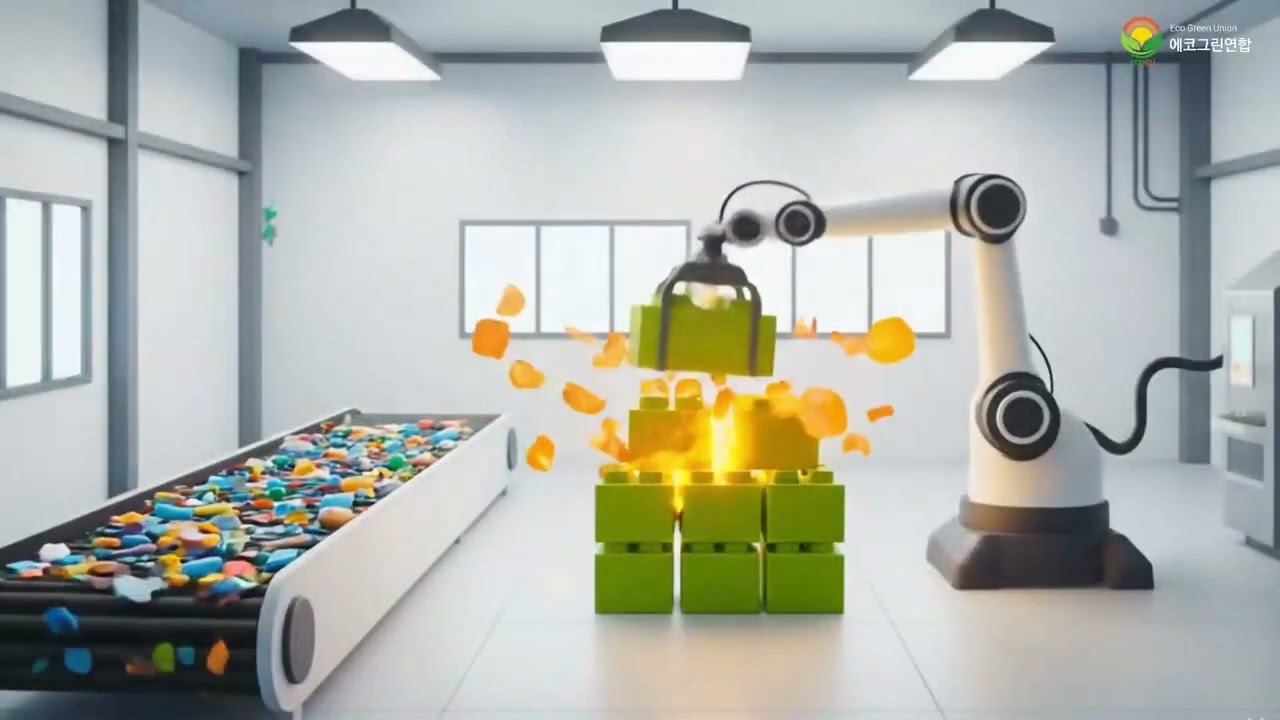플라스틱 폐기물을 분리 및 세척없이 제작하는 압도적 기술의 Eco C Cube 블록